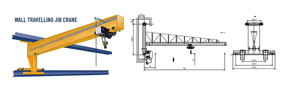 Настенный передвижной стреловой кран основан на структуре традиционного пилястрового стрелового крана R & D дизайна, является своего рода стреловым краном, который может работать вдоль стены или другой несущей конструкции на надземном пути.
